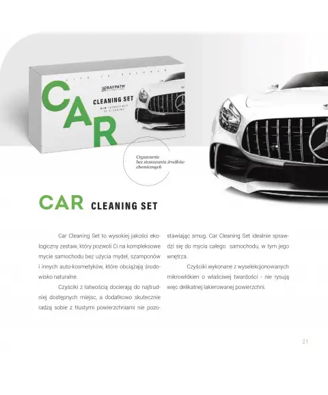 Car Cleaning Set to wysokiej jakości ekologiczny zestaw, który pozwoli Ci na kompleksowe mycie samochodu bez użycia mydeł, szamponów i innych auto-kosmetyków, które obciążają środowisko naturalne. Czyściki z łatwością docierają do najtrudniej dostępnych miejsc, a dodatkowo skutecznie radzą sobie z tłustymi powierzchniami nie pozostawiając smug. Car Cleaning Set idealnie sprawdzi się do mycia całego samochodu, w tym jego wnętrza. Czyściki wykonane z wyselekcjonowanych mikrowłókien o właściwej twardości – nie rysują więc delikatnej lakierowanej powierzchni.